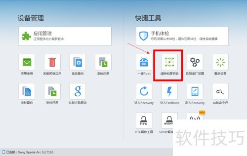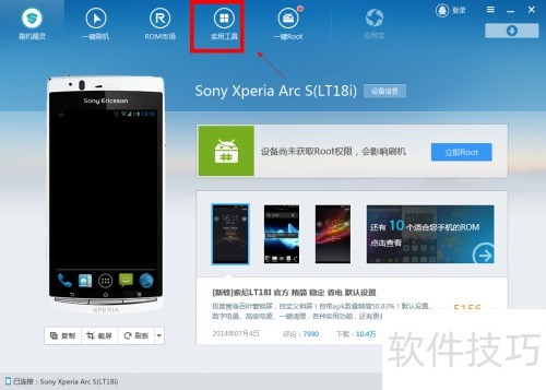 4、 将手机通过USB线接入电脑,连接成功后选择实用工具功能。