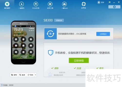 2、 通过USB数据线连接手机与电脑,启动刷机精灵软件后,系统将自动检测并安装对应手机驱动。待软件成功识别设备,即表示驱动安装完成,手机已正常连接。