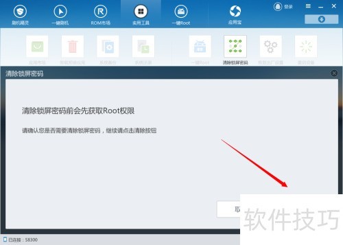 4、 在弹出提示需获取Root权限的窗口中,直接点击清除按钮即可继续操作。