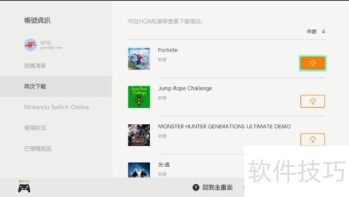 4、 若想重新下载已删除的免费游戏,可进入Nintendo eShop,点击右上角用户图标,进入用户界面后选择再次下载,即可找回并安装之前删除的游戏。