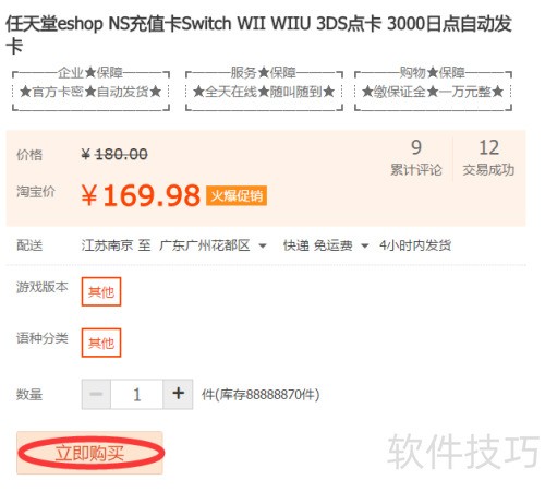 1、 登录淘宝,搜索eshop点卡,按图示步骤下单购买即可。