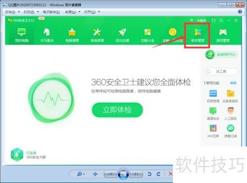 1、 首先在电脑上打开360安全卫士,若未安装则需先下载并安装该软件。