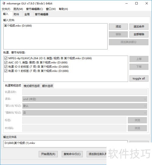 1、 打开Mkvtoolnix文件夹中的mmg程序,将视频文件拖入输入文件区域即可。