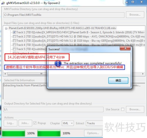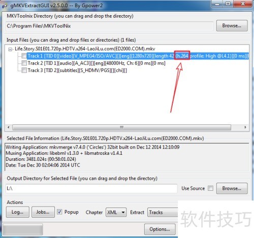 3、 gMKVExtractGUI 2.5.0 是一款用于提取视频封装内容的工具软件。