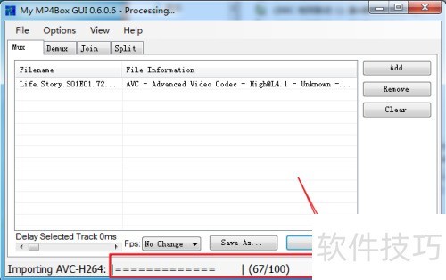 18、 将MKV中提取的.AVC文件直接更改为.H264格式,即可通过My MP4Box GUI顺利导入并封装为MP4文件,操作简单便捷。
