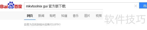 2、 在百度搜索mkvtoolnix gui 官方版下载,获取并安装最新版本的 mkvtoolnix 软件。