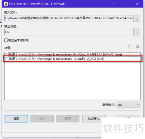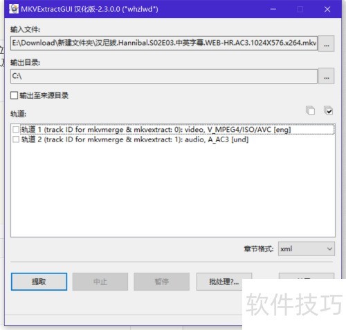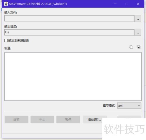 3、 双击运行MKVExtractGUI程序,将弹出相应操作界面。
