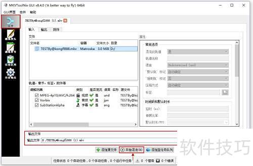 13、 确定输出文件名称后,点击开始混流按钮,操作所示。