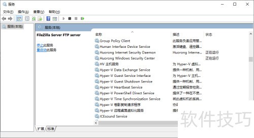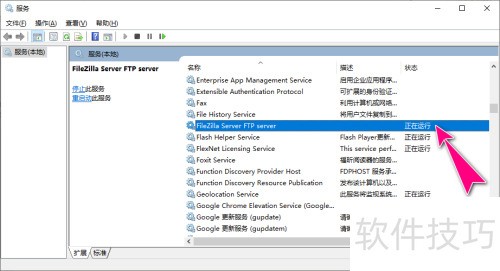4、 查找与FileZilla Server工具关联的系统服务,该服务通常默认处于启用状态。
