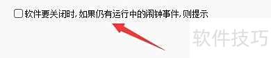 3、 在软件设置界面,勾选软件关闭时若有闹钟任务运行则提示选项。