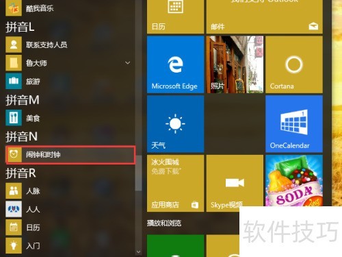 2、 向下滚动已开启的应用,找到闹钟与时钟并点击进入。
