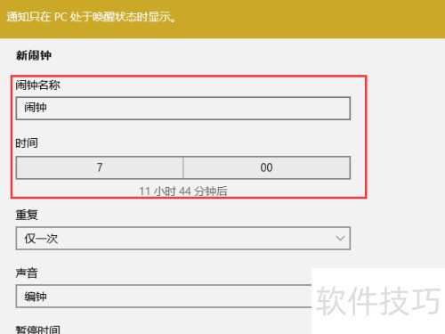 4、 进入闹钟页面,编辑名称为待办事项,随后设置具体时间即可。