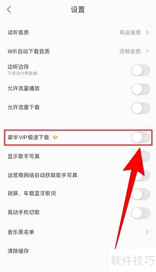 3、 在设置页面中点击豪华VIP极速下载选项后的圆点。