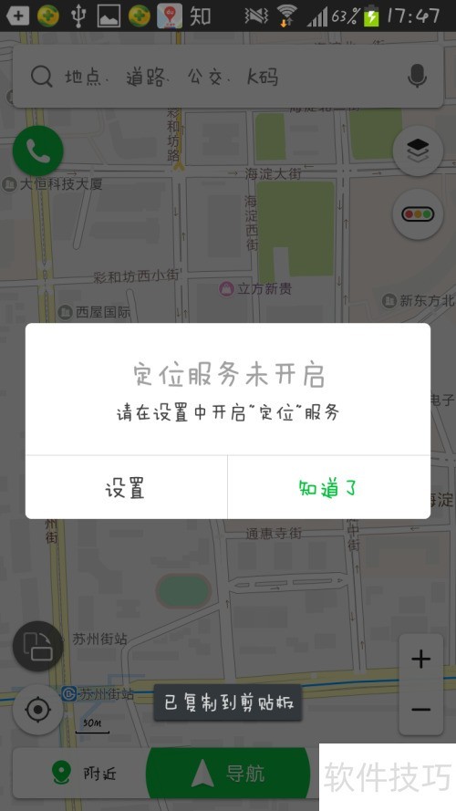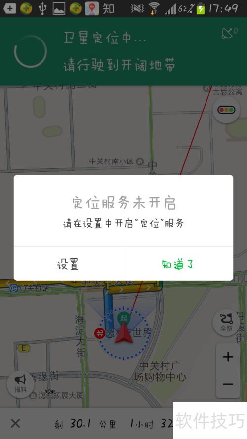 2、 请开启定位服务,前往设置进行操作,选择设置或知道了。