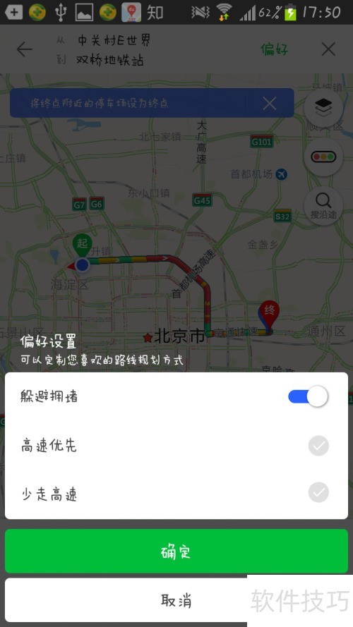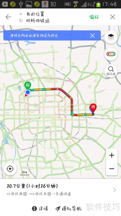 4、 输入起点和终点后,系统将自动跳转至路线规划界面。