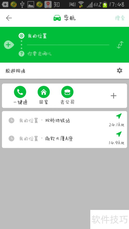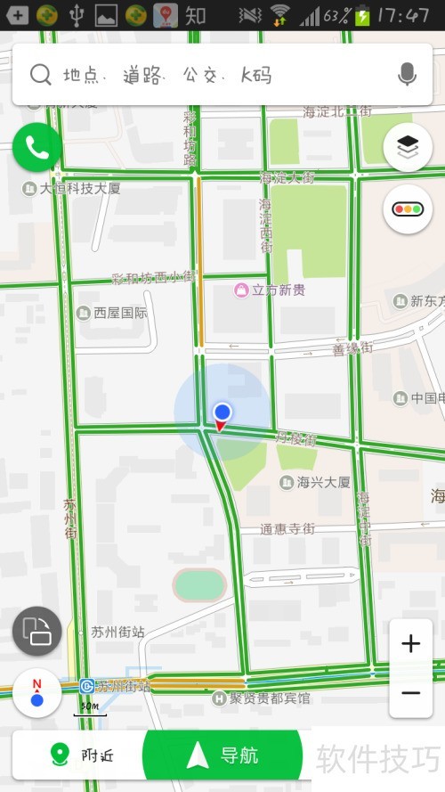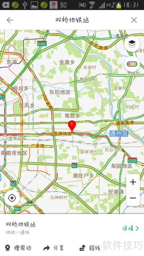 8、 在附近或我的位置输入目标地点,如双桥地铁站。
