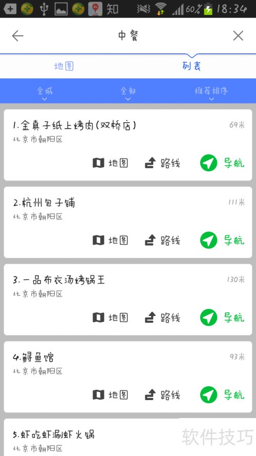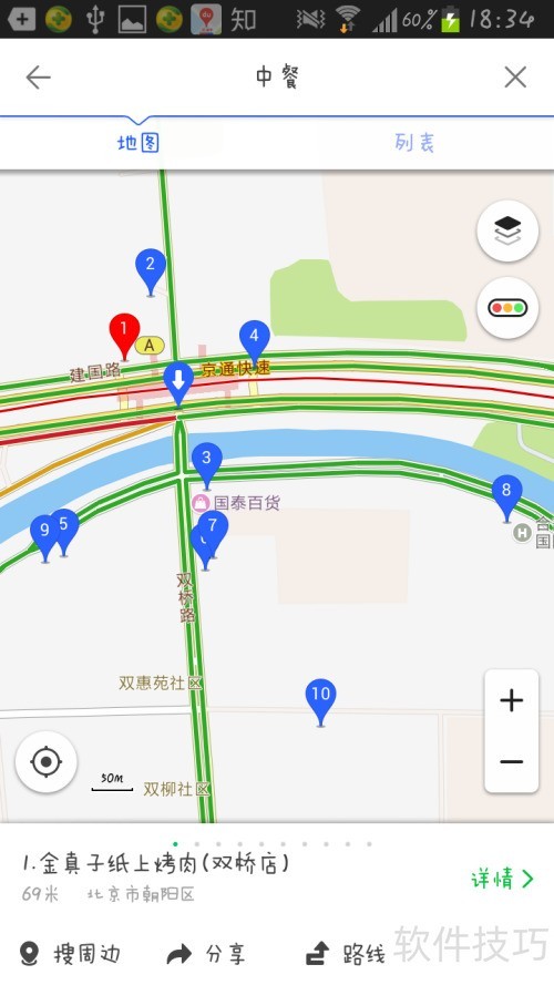 10、 选择中餐可查看双桥周边的中式餐厅。