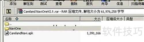 2、 下载完成后会获得名为Careland NaviOneV2.1.rar的压缩包,解压后包含navione文件夹和carelandnavi.apk文件,请将这两个内容一同复制到手机的存储卡内即可。