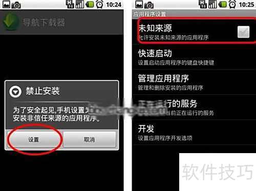 3、 断开数据线后,在手机中找到文件并点击。安装前需进行设置,若弹出禁止安装提示,点击设置,进入应用管理,开启未知来源选项,允许安装非官方应用。
