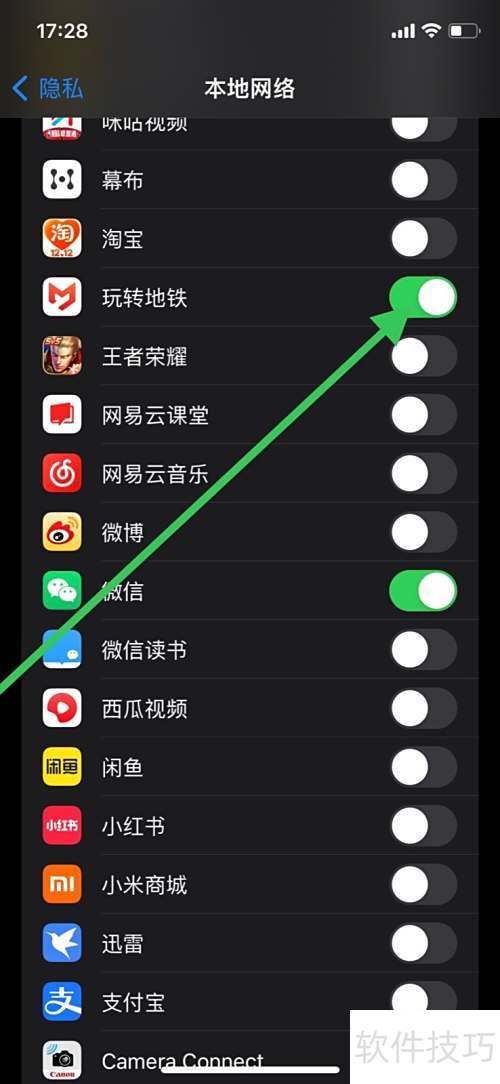 关闭iPhone本地网络后,按步骤操作即可正常使用玩转地铁应用。