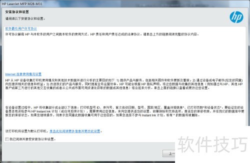 5、 安装惠普LaserJet Pro MFP M29w驱动前,请先仔细阅读许可协议,确认无误后即可按照图示步骤进行安装操作。