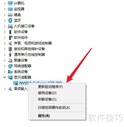 3、 打开设备管理器,定位控制中心驱动,右键选择更新驱动程序并下载安装。