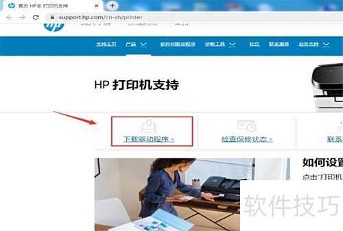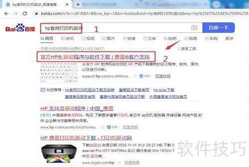 1、 浏览器搜索HP官网获取打印机驱动程序。
