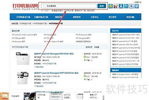 2、 在搜索框中输入所需惠普打印机型号,点击搜索即可查找下载内容。