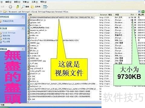 7、 打开临时互联网文件夹,先刷新页面以确保视频文件显示,然后点击大小列标题,让文件按容量从大到小排序,便于查找较大的视频文件。
