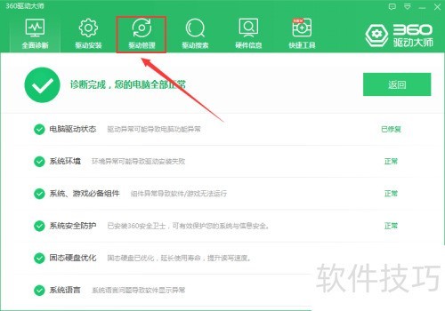 1、 双击运行360驱动大师,进入驱动管理界面。