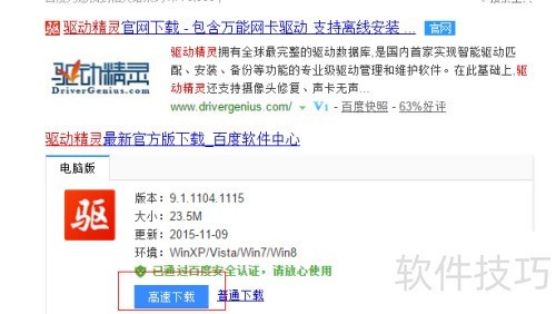 2、 搜索驱动精灵,点击百度链接,下载该软件。