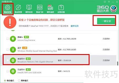 5、 上下滑动查找有线网卡图标,点击一键安装即可。
