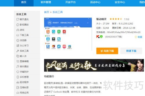 1、 通过百度搜索驱动精灵,下载该软件,操作步骤所示。