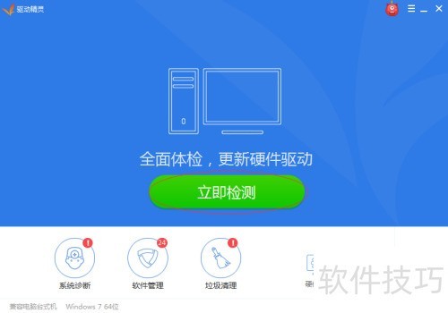 2、 安装驱动精灵时选择默认设置,完成后启动程序,界面所示。