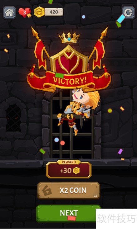 4、 少年成功取得黄金,屏幕上显示胜利画面,顺利通关。