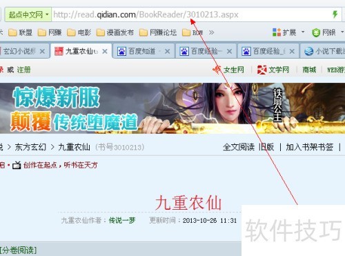 2、 以起点小说网为例,查找并确定需制作成txt格式的小说页面地址。