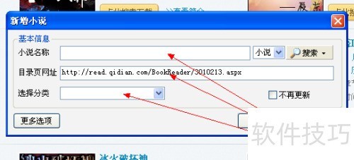 5、 打开小说阅读器,点击增加,填写书名,分类可选,最后确认即可。
