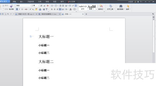 3、 根据目录层级设置大标题与小标题,通过工具栏选择相应格式功能进行调整,操作简便,具体效果可参照示意图。