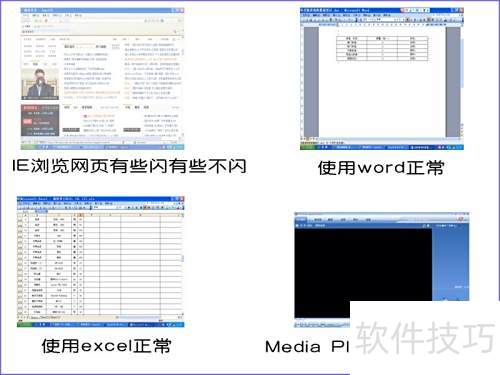 1、 为确认客户反馈的问题,我亲自使用IE浏览器测试了多个网页。测试中发现,部分二级链接打开时页面无闪烁,但有些仍会出现闪烁现象。当关闭或最小化IE窗口后,屏幕显示立即恢复正常,且运行其他程序如Word、Excel或观看视频均不受影响,操作流畅。