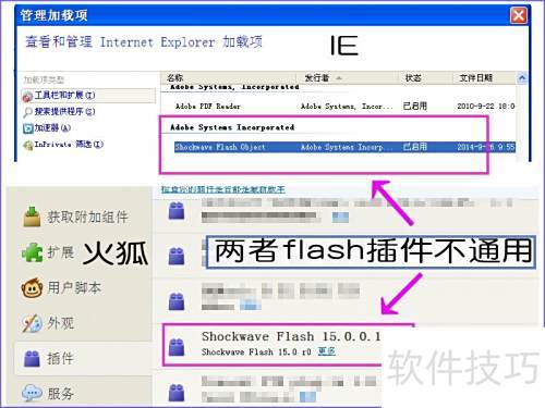 6、 为何Flash插件在火狐浏览器中运行正常?原因在于火狐与IE使用的并非同一份插件文件,二者各自独立安装,互不兼容,因此即使一处出现问题,另一处仍可正常运行。