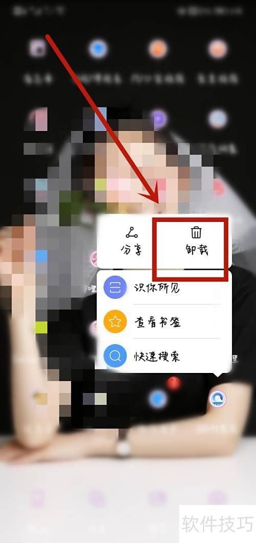 1、 长按QQ浏览器图标,选择界面顶部的卸载选项进行操作。