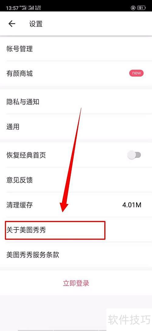 6、 打开手机后,找到并启动美图秀秀应用。进入主界面后,点击右下角的我的选项,进入个人页面。在该页面中选择设置功能,进入后即可查看关于美图秀秀的相关信息。整个操作流程简单清晰,适合新手用户快速上手。以上是我在长期使用该软件过程中总结出的实用步骤,希望能为需要的用户提供帮助,提升使用体验,更便捷地找到所需功能,充分发挥软件的各项优势,让修图变得更加轻松高效。
