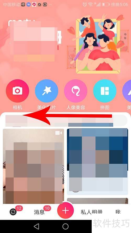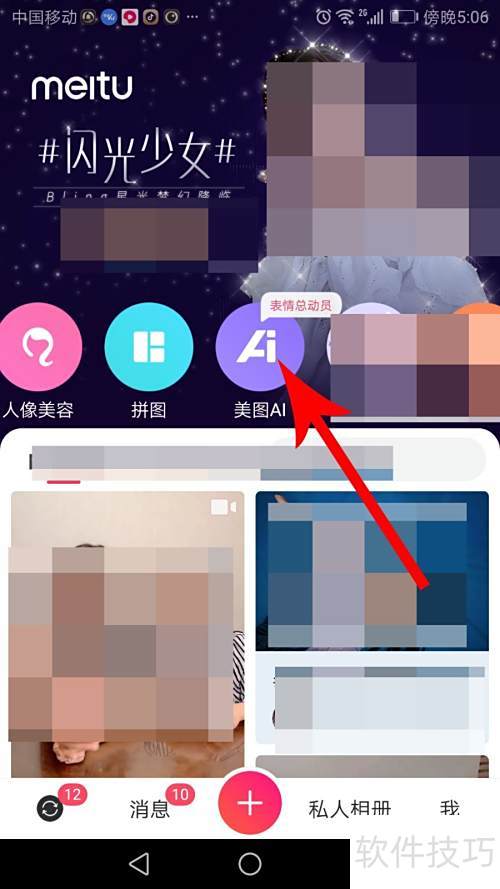 5、 更新后打开美图秀秀首页,左滑菜单栏,点击美图AI即可使用,具体位置所示。