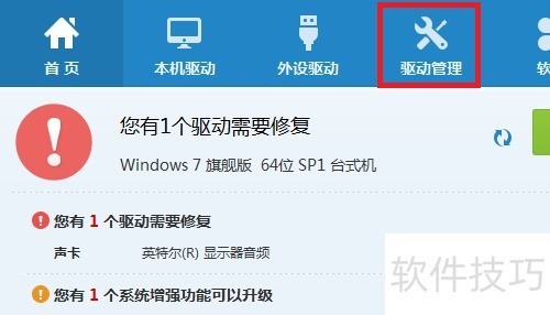 1、 启动软件后,点击顶部菜单中的驱动管理选项。