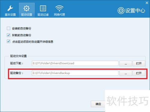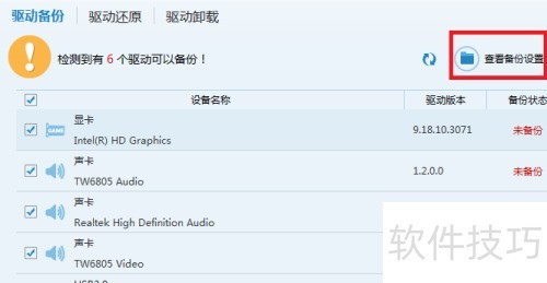 3、 进入设置中心后,找到底部的驱动备份选项,点击并选择备份目录即可。
