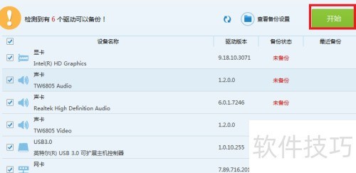 4、 选定目录后返回备份界面,点击右上角开始,软件将自动进行驱动程序备份。