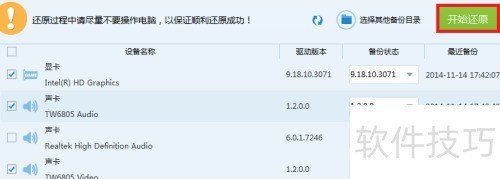 6、 在驱动文件前勾选所需项目,可多选,确认后点击右上角开始还原即可。