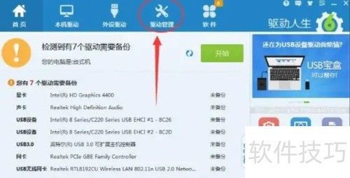 1、 启动驱动人生软件,点击顶部功能栏进入本机驱动管理界面。
