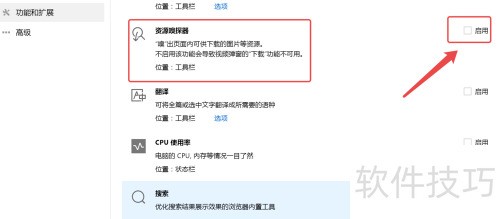 5、 开启资源嗅探器功能,点击启用即可使用。