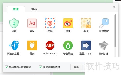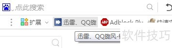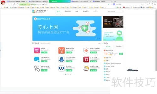 1、 启动360安全浏览器,于搜索框下方定位扩展栏区域。